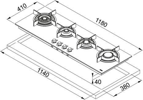 Franke FHCR 1204 3G TC HE BK C Piano Cottura a gas 4 Fuochi 120 cm Cristallo Griglie in ghisa 106.0374.292